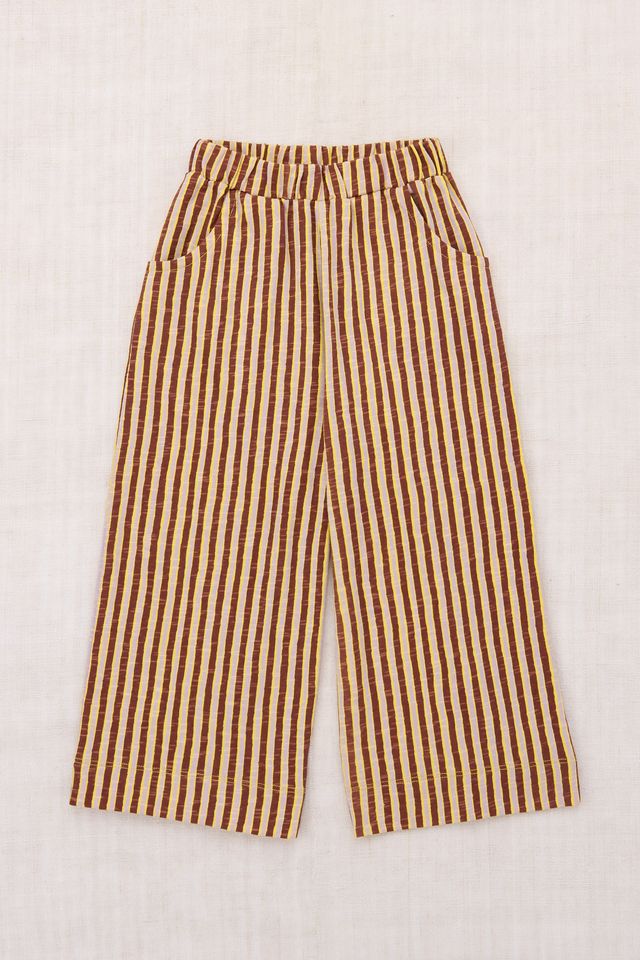 A wide-leg pull-on pant in organic cotton slub jersey, with an elastic waistband, two pockets, and contrast stitching. This slub jersey is slightly thicker than our Pima cotton styles, with a touch of structure.