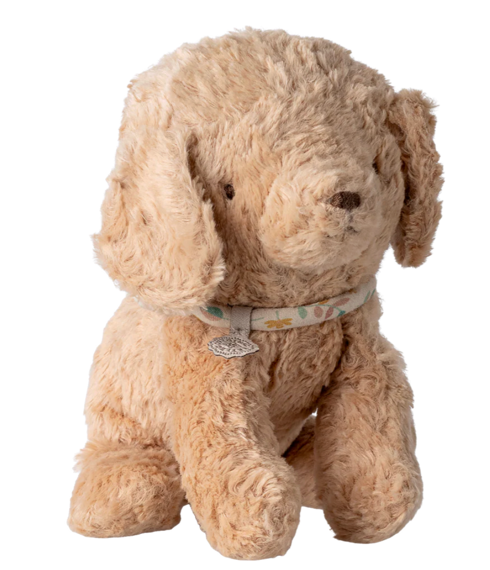 This sweet poodle puppy plush is ready to become your new best friend. Its special fur has a soft touch and a charming vintage look that makes it extra lovable. With a floral collar around its neck, the puppy feels just like a real pet! Add to the fun with special accessories, like a cosy sweater, a harness, pet toys, and a soft carrier bag, perfect for bringing your puppy along on every adventure.