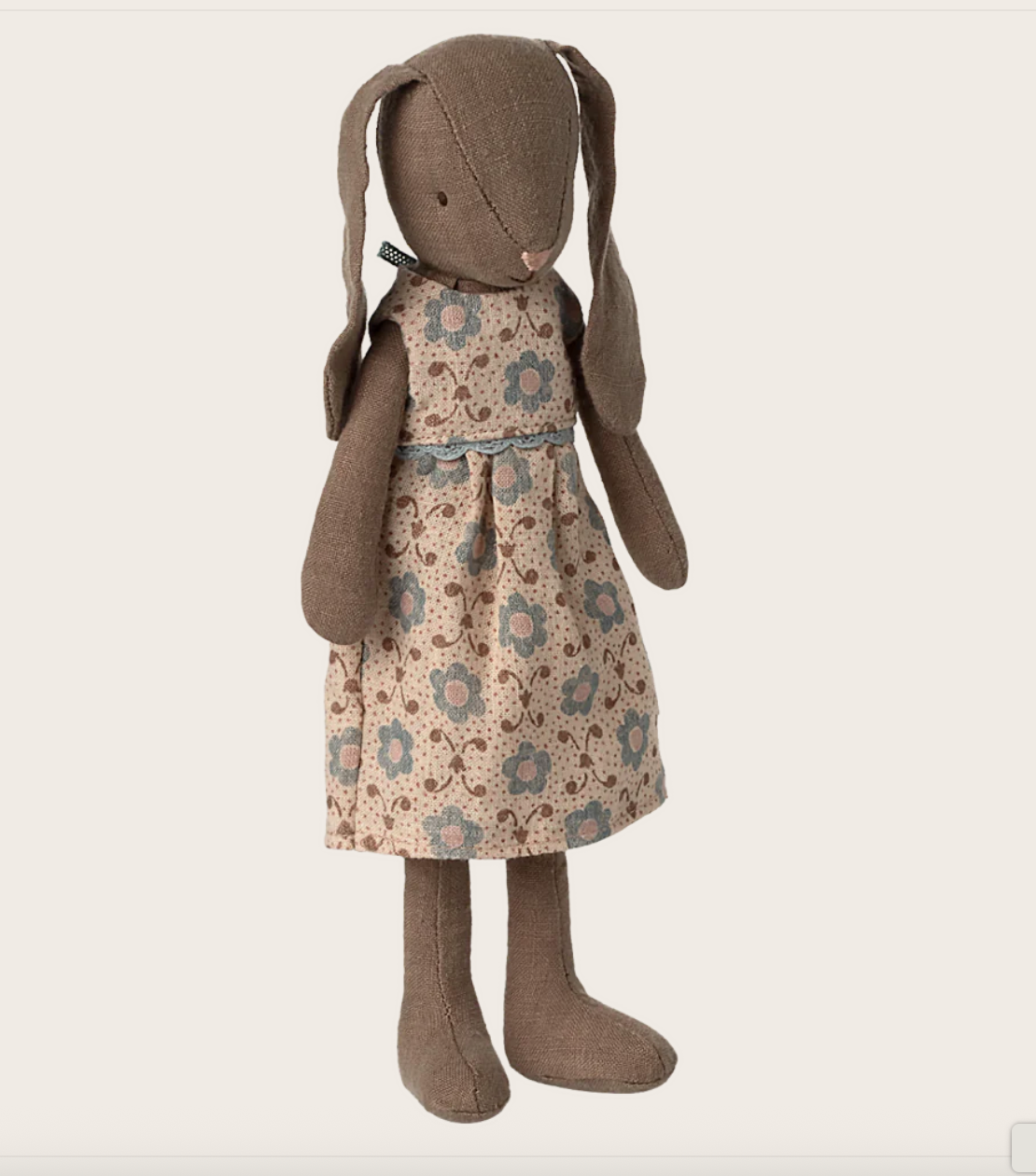 A classic bunny made of soft natural fabrics that gives a lovely hand feel and look. Size 2 bunny fits into the House of miniature and all furniture size mini and miniature. Fabric may vary.