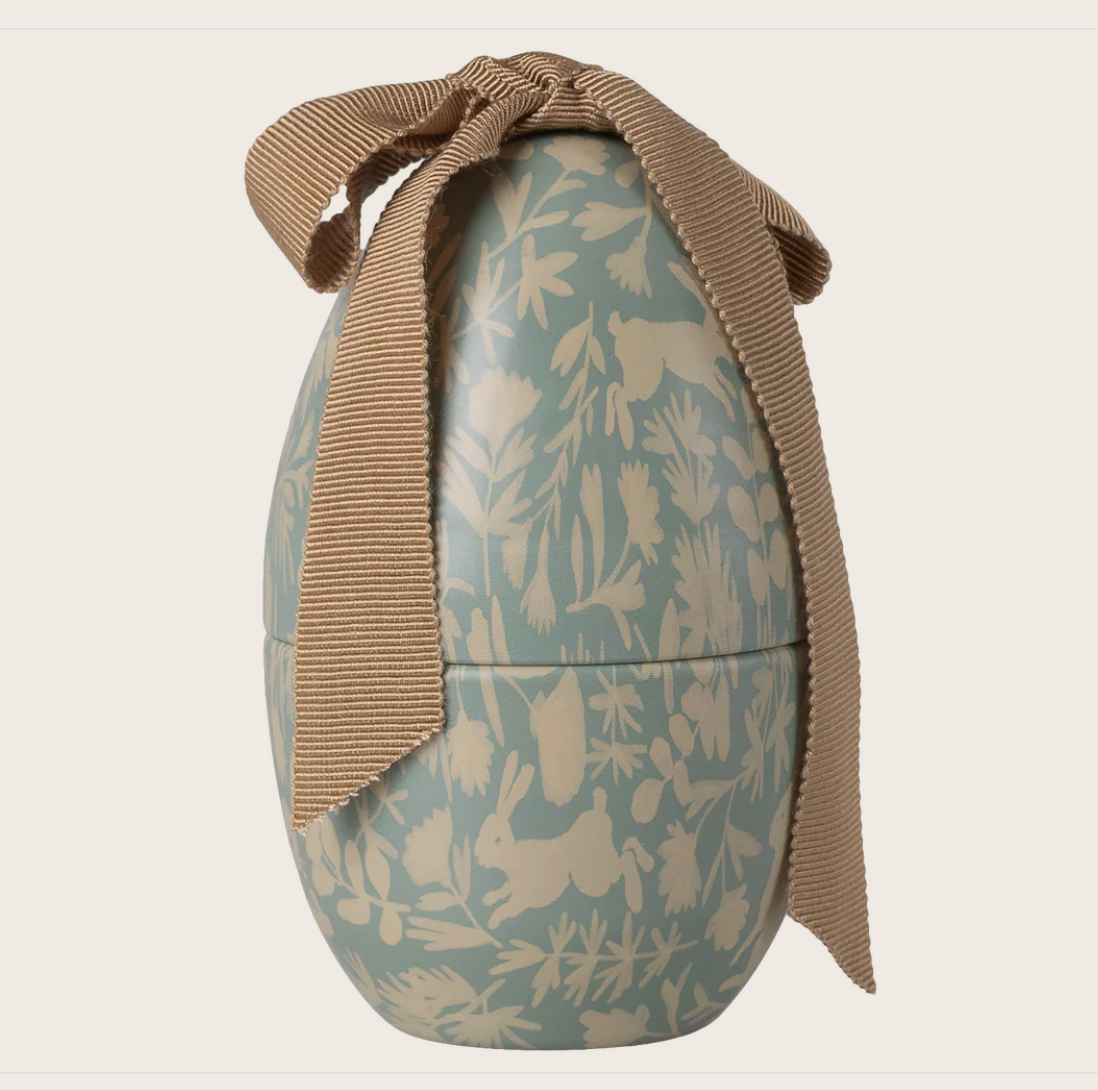 The Maileg easter egg has a beautiful new all over print. Take a good look at the print and see if you can find the different animals. The egg comes with a big soft bow on the top that gives the egg an exclusive look.