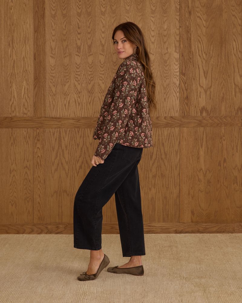 Our Quilted Collar Jacket has a cute peter pan collar and mango buttons along the center front. It has pockets along the bottom of the coat as well for all outdoor activities.