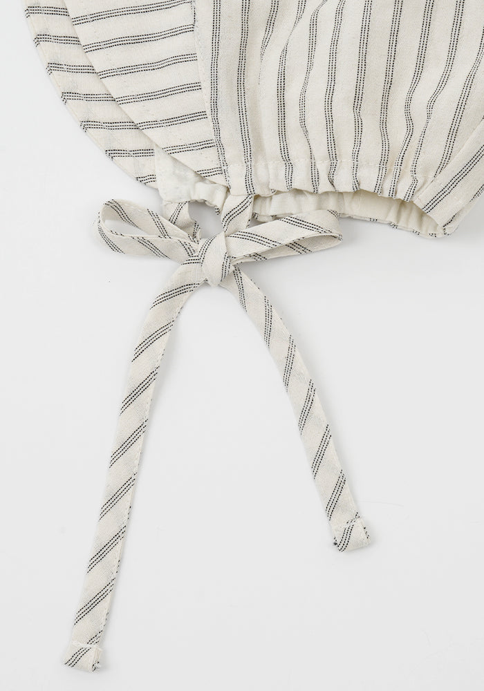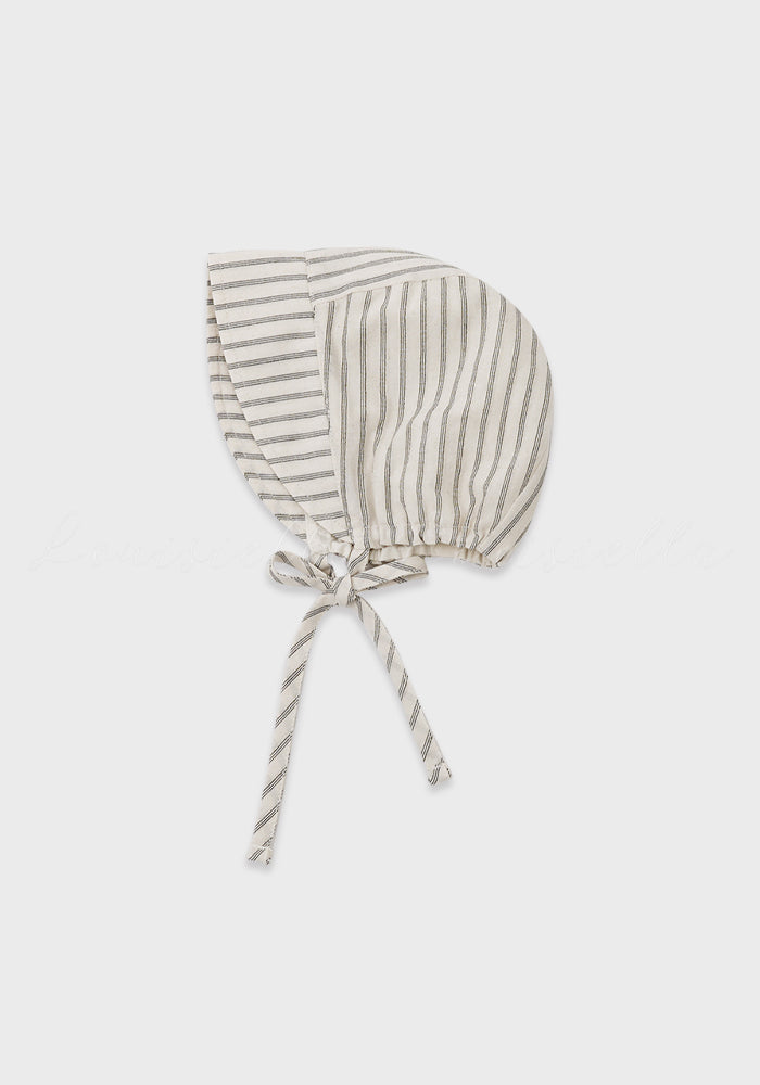 Complete the perfect baby girl outfit with Louisiella's baby bonnet, Its vintage-inspired stripes will gracefully crown your little one. Designed to match our Ivy line, we recommend getting them together as a gift set.