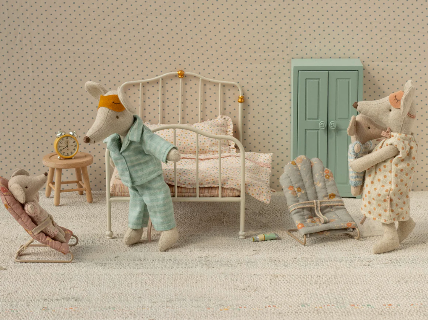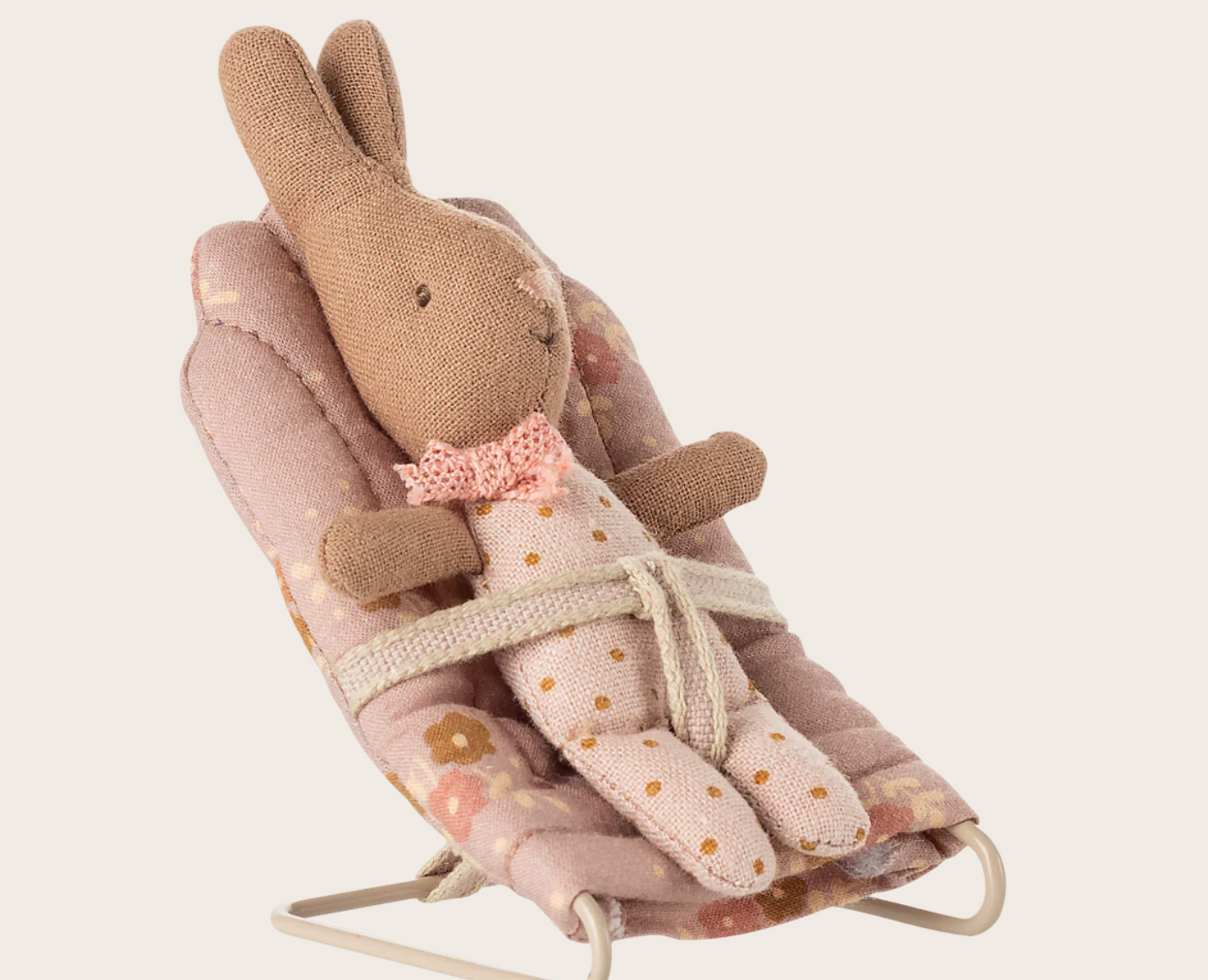 With this babysitter, it is easy to put your little friends to sleep. The base is made of metal and covered by the most lovely fabric. The chair fits my sized rabbits/bunnies and baby mice perfectly.