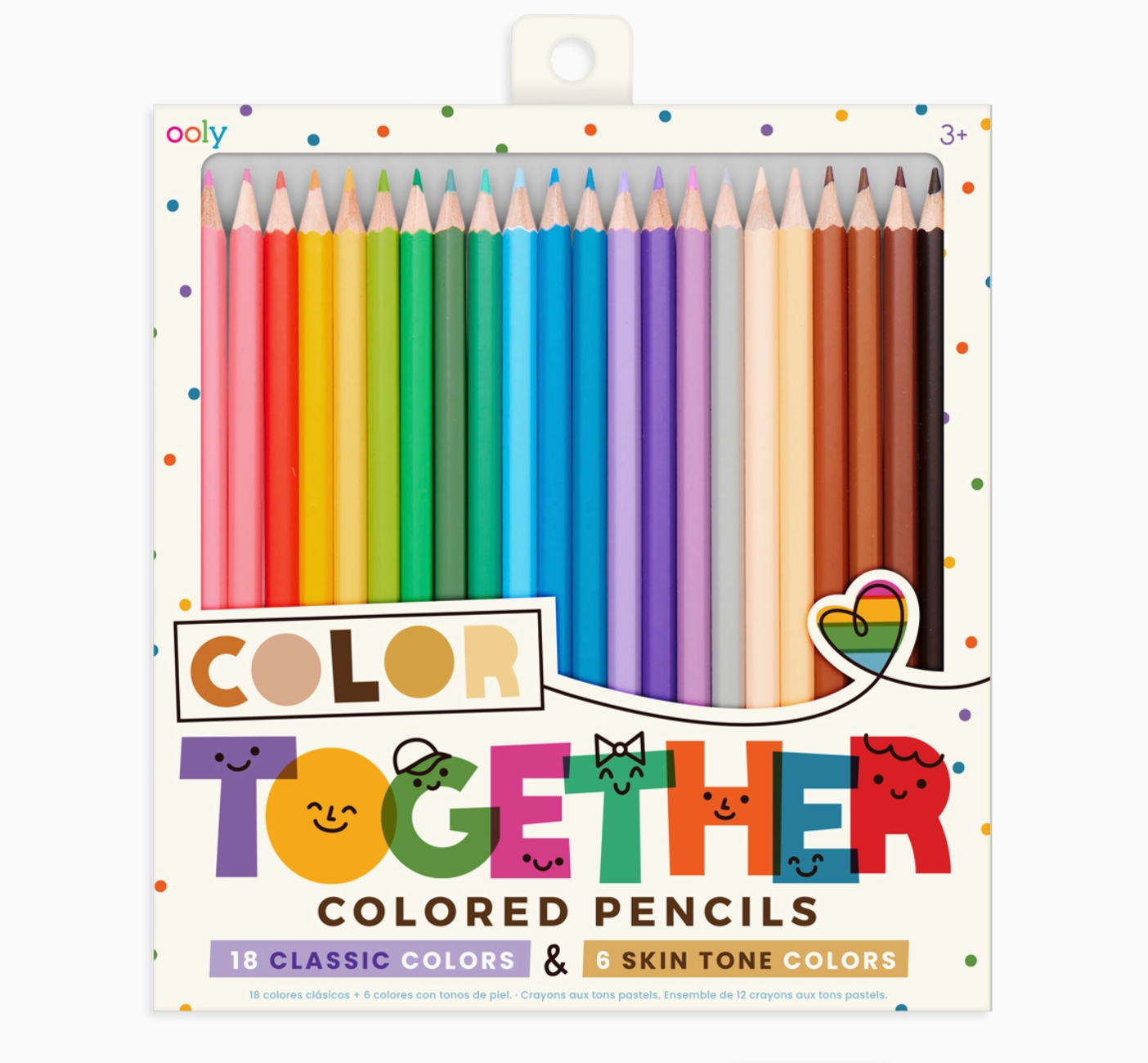 With the Color Together Colored Pencils you can create more detailed and realistic art. The 18 classic shades allow you to color anything you can dream up, while the 6 skin tone shades allow you to draw yourself and anyone else in a way that best represents them. The 24 pack of colored pencils is perfect for all art projects large and small, so grab a friend and any of the OOLY sketchbooks, and get ready to color together! Suitable for ages 3 and up.