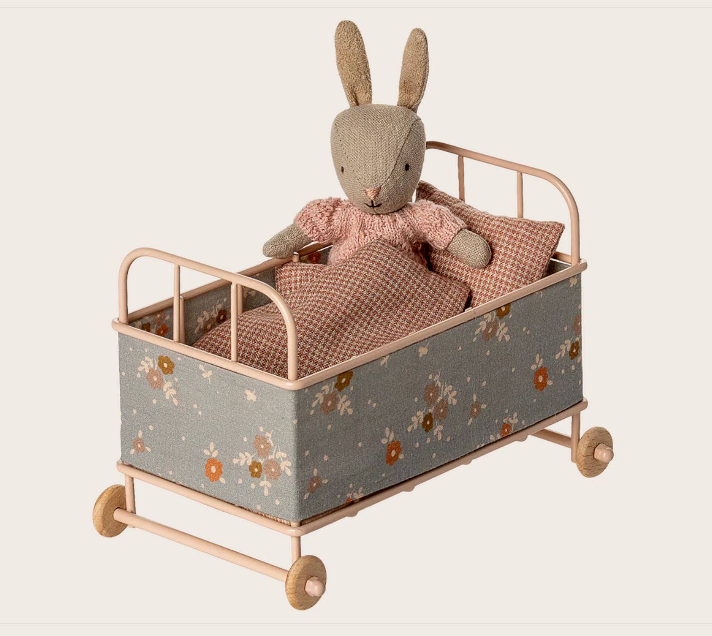A cosy cot bed made of metal, it comes with a mattress, blanket, and pillow. It has a fabric cover to make sure the little ones can get their sleep. You can tuck in your micro sized friends as well as the small mice.