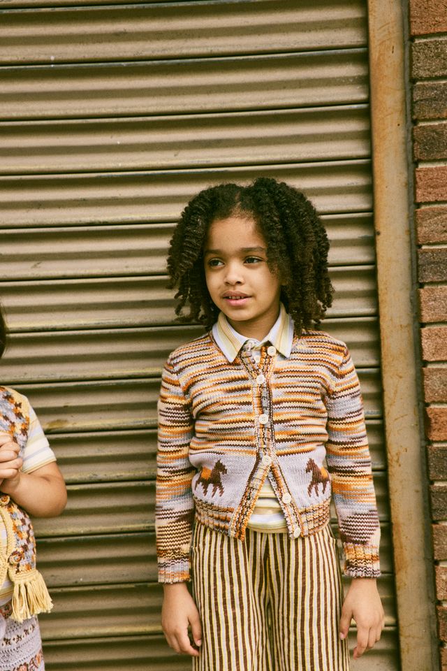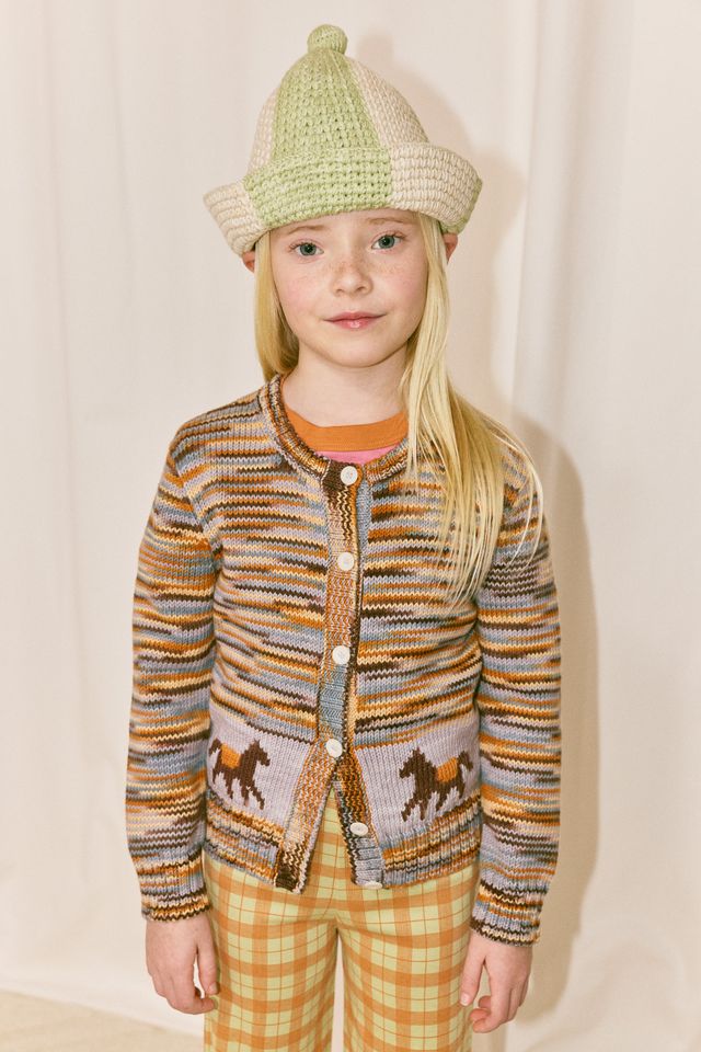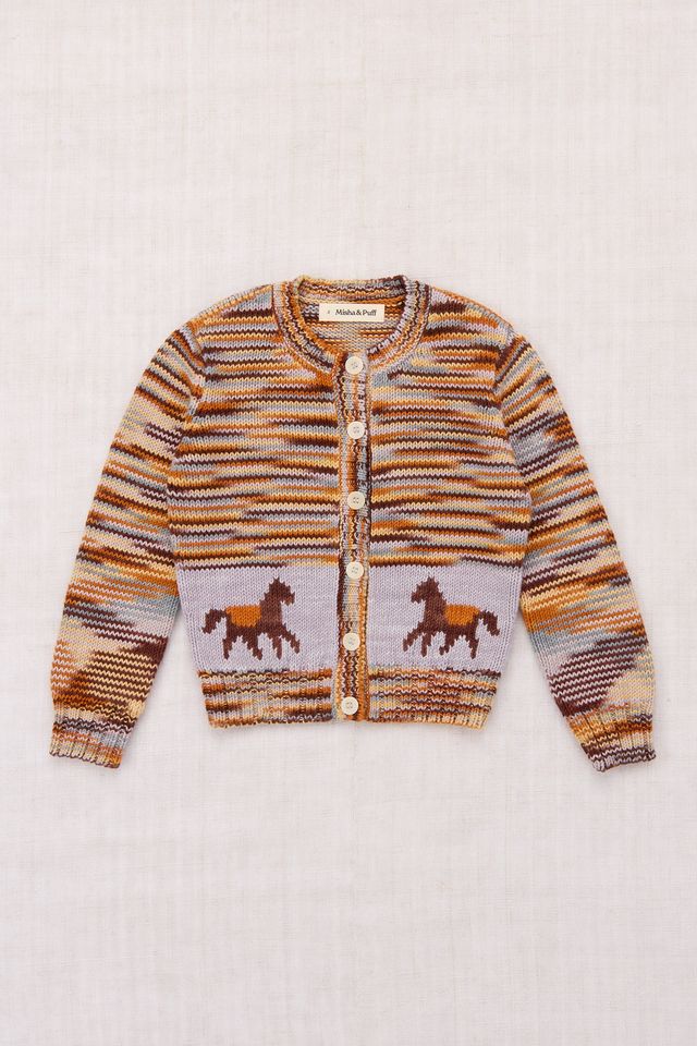 A classic cardigan in Pima cotton, featuring an intarsia motif, wide ribbed trim, and corozo button closure.