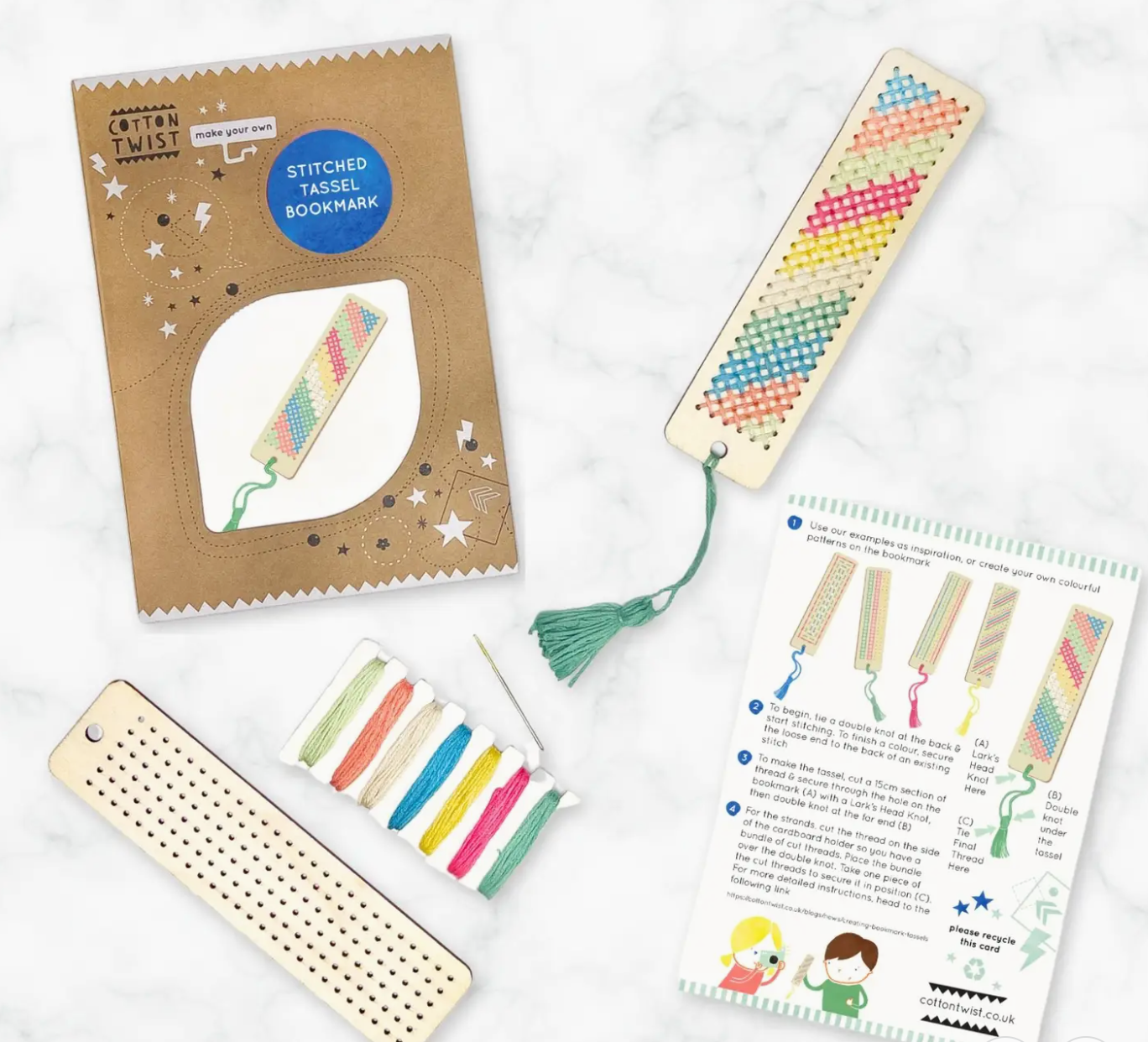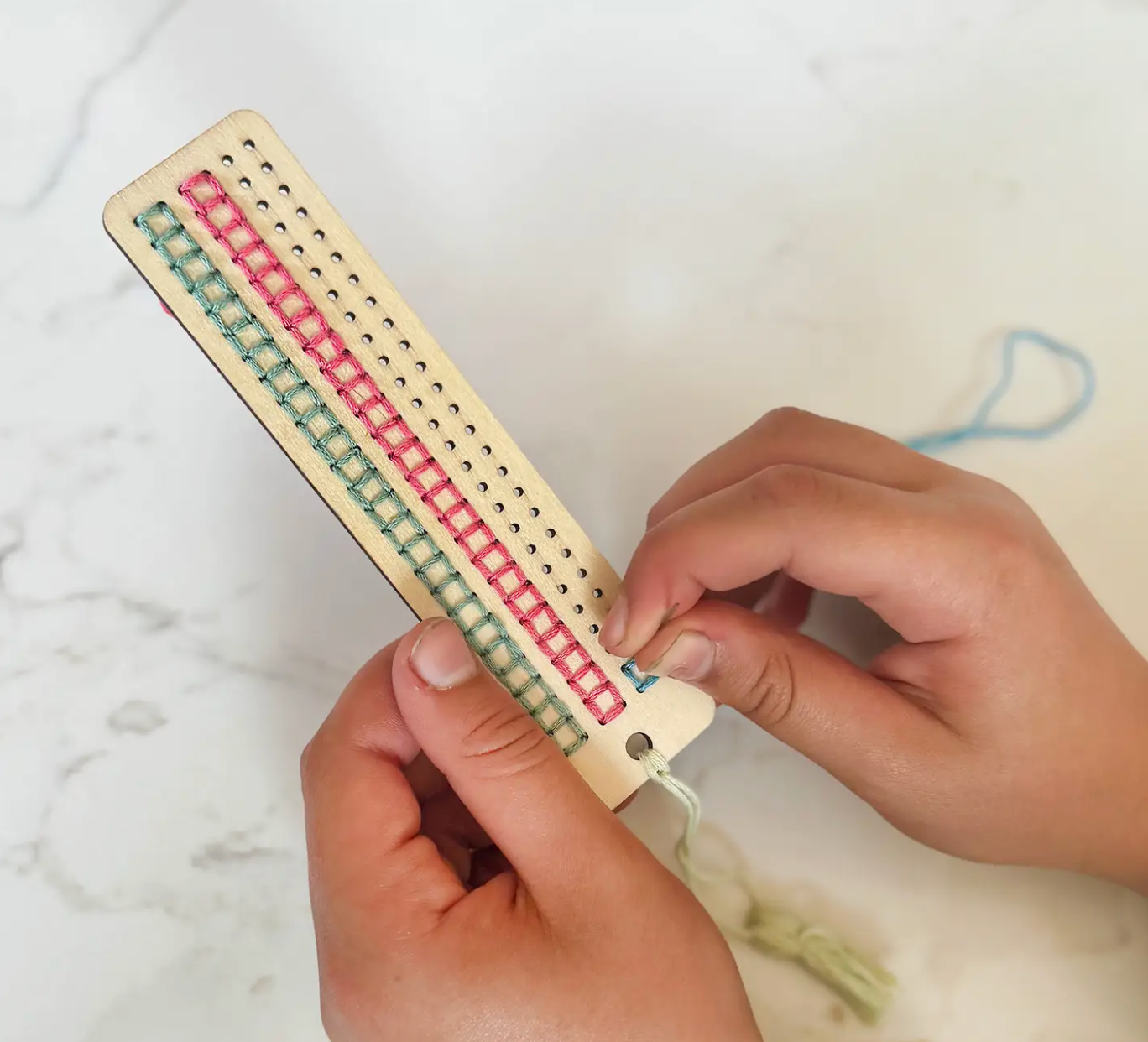 With these components, children can easily create a variety of intricate patterns on their bookmarks. The process is not only fun but also educational, promoting fine motor skills and creativity. Once the stitching is complete, they can add a charming tassel to the end of the bookmark.
