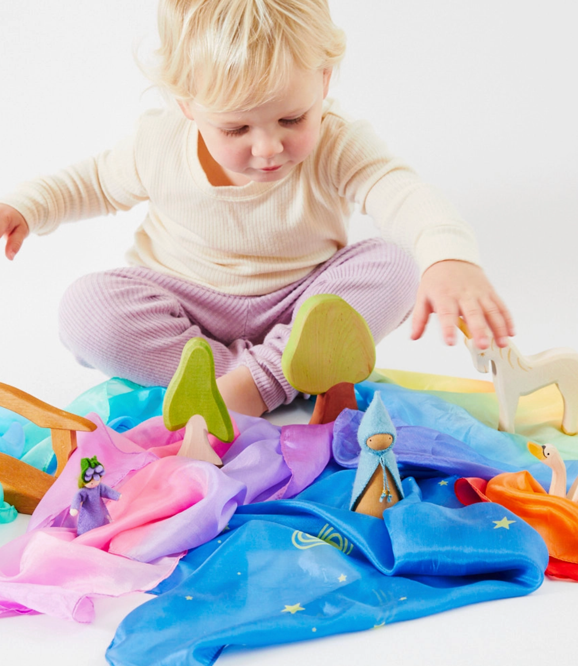 Playsilks are inspiring, magical toys that children will be drawn to play with time and time again. The simplicity and open-ended nature of Playsilks tap directly into the child’s creative potential.
