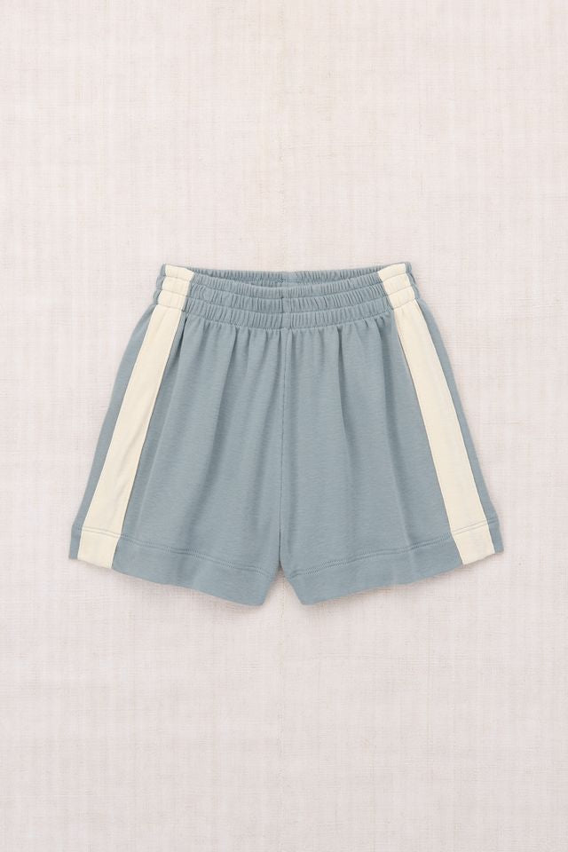 A vintage-style pull-on short in organic Pima cotton, with an elastic waistband and contrast appliqué striped sides.