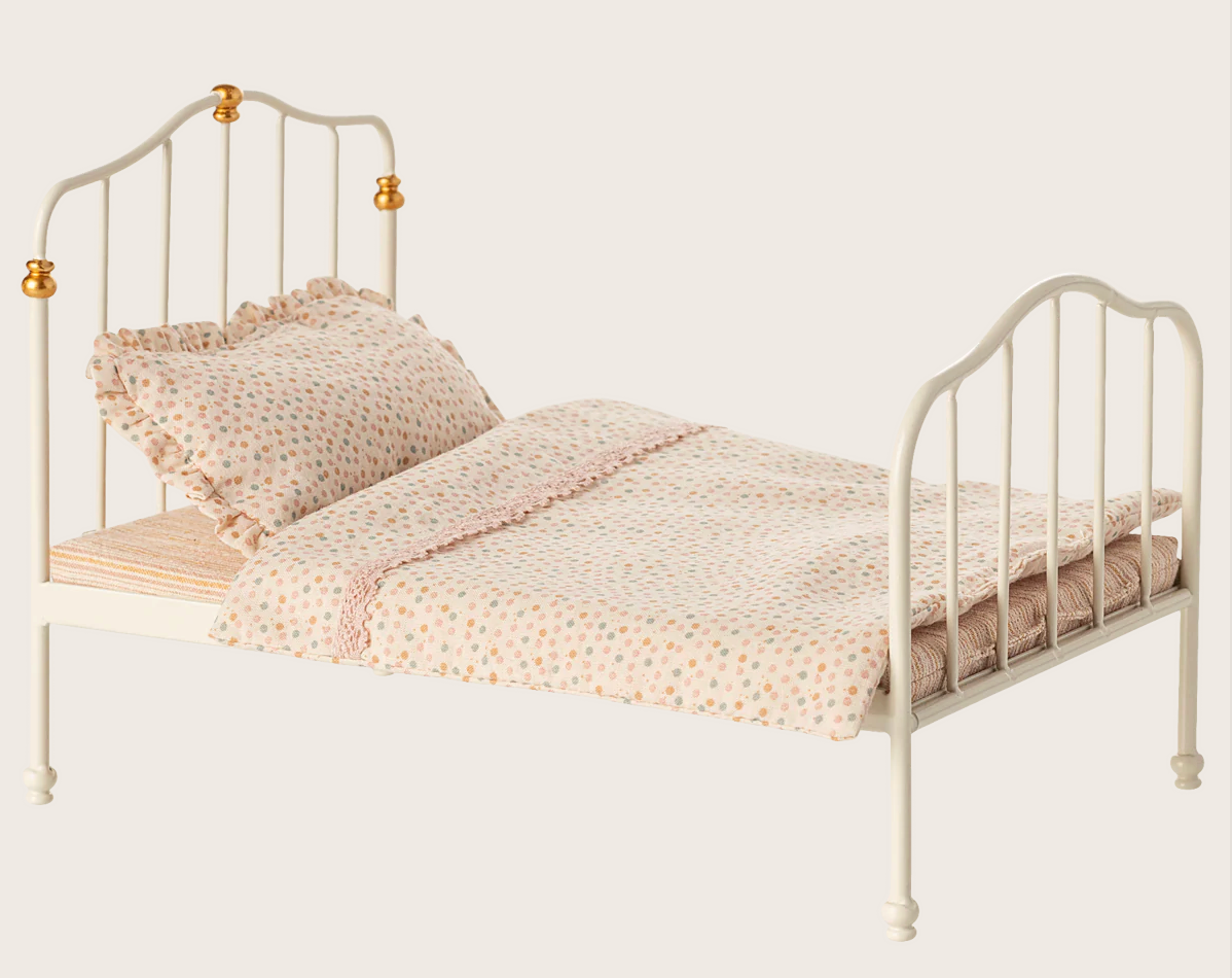 A perfect bed for a good nights sleep. The bedlinen is made in beautiful Maileg printed fabrics - all different but carefully chosen to make the look complete. This bed fits the mum/dad mice and grandmum/-dad mice.